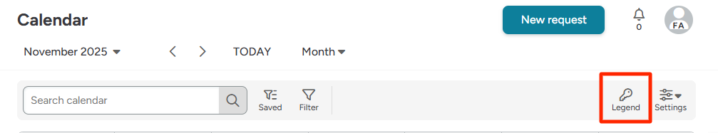 8. Your calendar page will now be color coded by the assigned user! (Click on the key icon to see the calendar's legend).
