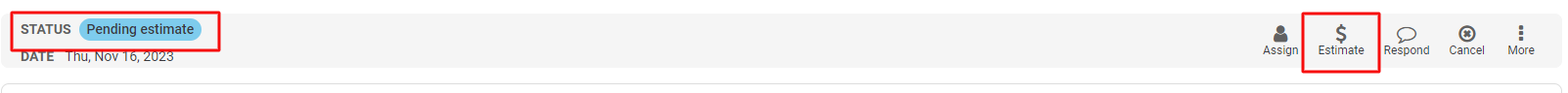 1. Find the schedule request you wish to estimate (on the calendar or in the schedule requests grid), then click Estimate. Please note, the request must be in the status Pending Estimate to estimate the request.