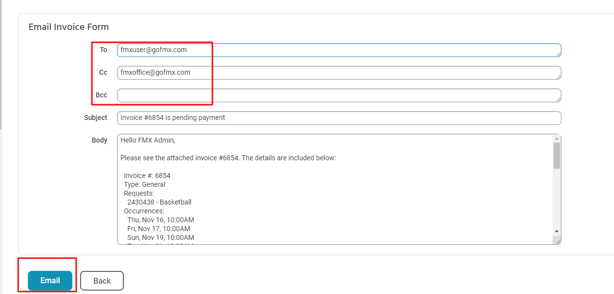 5. To send an email to the user click Email. Similar to sending the estimate, you can change the email address or cc other email addresses if needed. Click Email to send the email.