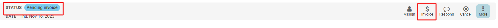 1. Find the schedule request you wish to invoice (on the calendar or in the schedule requests grid view), then click Invoice. (Please note that the invoice action only appears once a request has been estimated and the estimate has been accepted by the requesting user. The request must be in the status "Pending Invoice".)