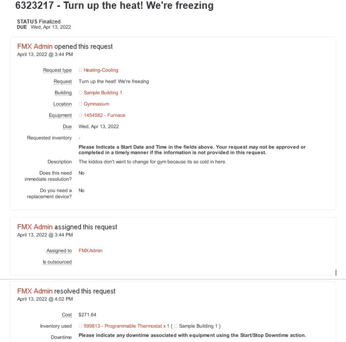 - PDF (grid rows) - displays maintenance requests as they appear in the FMX grid view