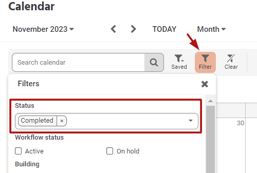 1. Find the resolved request you wish to reopen by applying a filter for "Completed" status. (on the calendar or in the module grid view, accessed via the left sidebar), then click Reopen.