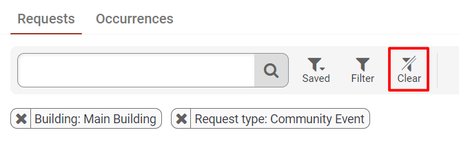 To quickly remove all of the filters that are currently selected, click on the "x" attached to the filter button: