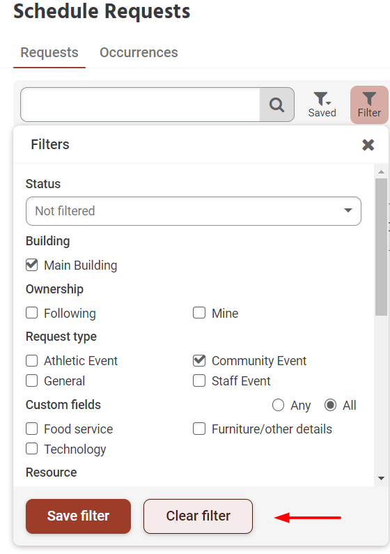 If you're having trouble locating certain requests, events, or other information on your FMX calendar or in your FMX grids it could be because you have a filter selected that is hiding the information you're looking for.