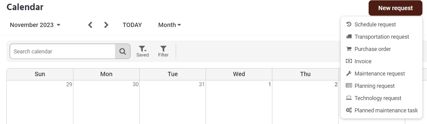 Step 1: Click New request in the right top corner of the calendar page.