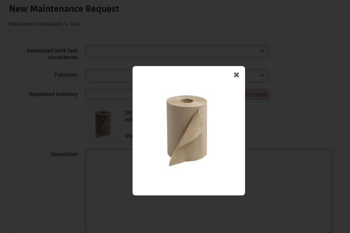 Users can add images to their inventory items that will show up when requesting, applying inventory to a request in a response or resolution. These images will also appear when applying inventory to a planned maintenance task and can be displayed in the inventory grid view.