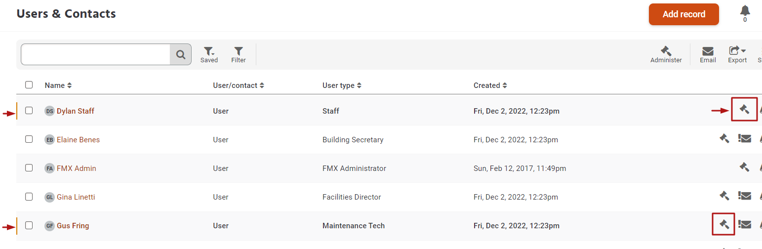 1 Start in Users & Contacts, find the user you'd like to update Liability Insurance info for, and click "Administer" to the right of the row with their name. **Note: If a user's name is bold with a vertical line to the left of their row in the grid view, their Liability Insurance needs updated.