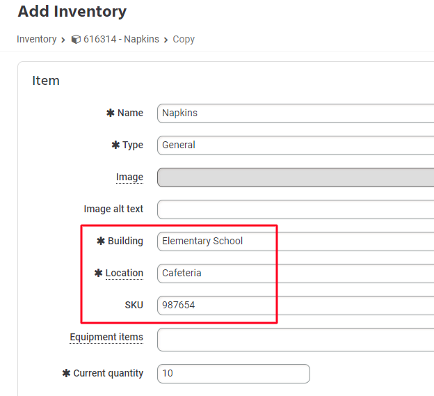 Step 2. Create the second item, located in a different building, with the same SKU.