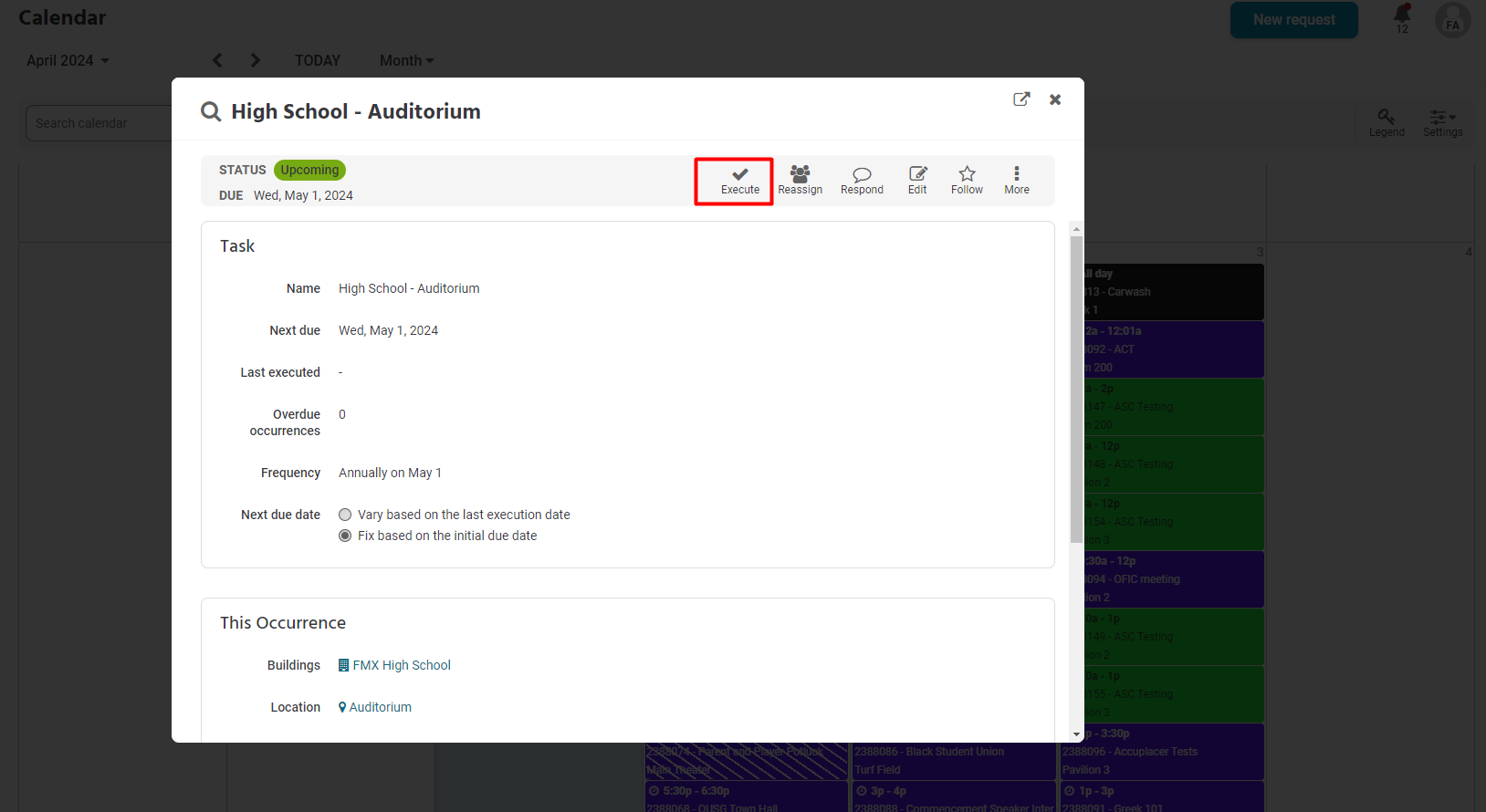 Repeat this process to create FIT inspections for all of the areas you would like. Then complete each inspection by executing the occurrence. Additionally these can be created via the bulk import. See this support article for more details.