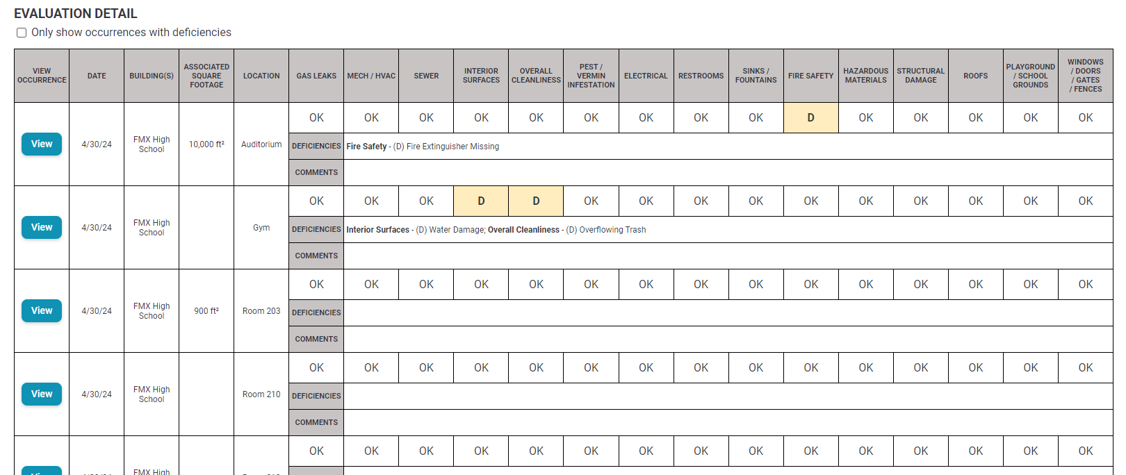 There will also be a report that is linked to this module. This report will be able to be exported from your FMX site. The fields that are filled and the report are based on the FIT reports that school districts in California do for their buildings. Fill out the "ASSOCIATED SQUARE FOOTAGE" field for this to show up on the report.