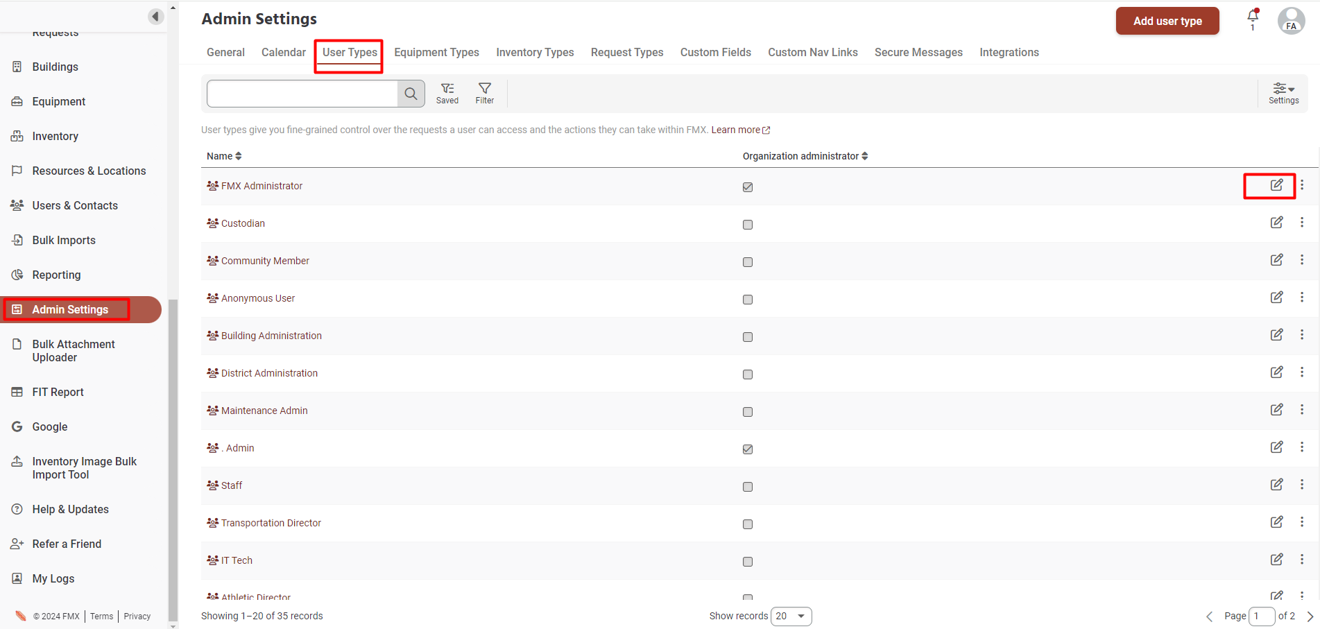 Navigate to your user’s user type settings. The user type settings can be found in the admin settings.