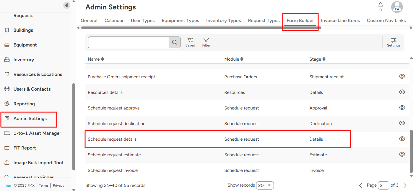 1. Go to admin settings, and then to the Form Builder section.