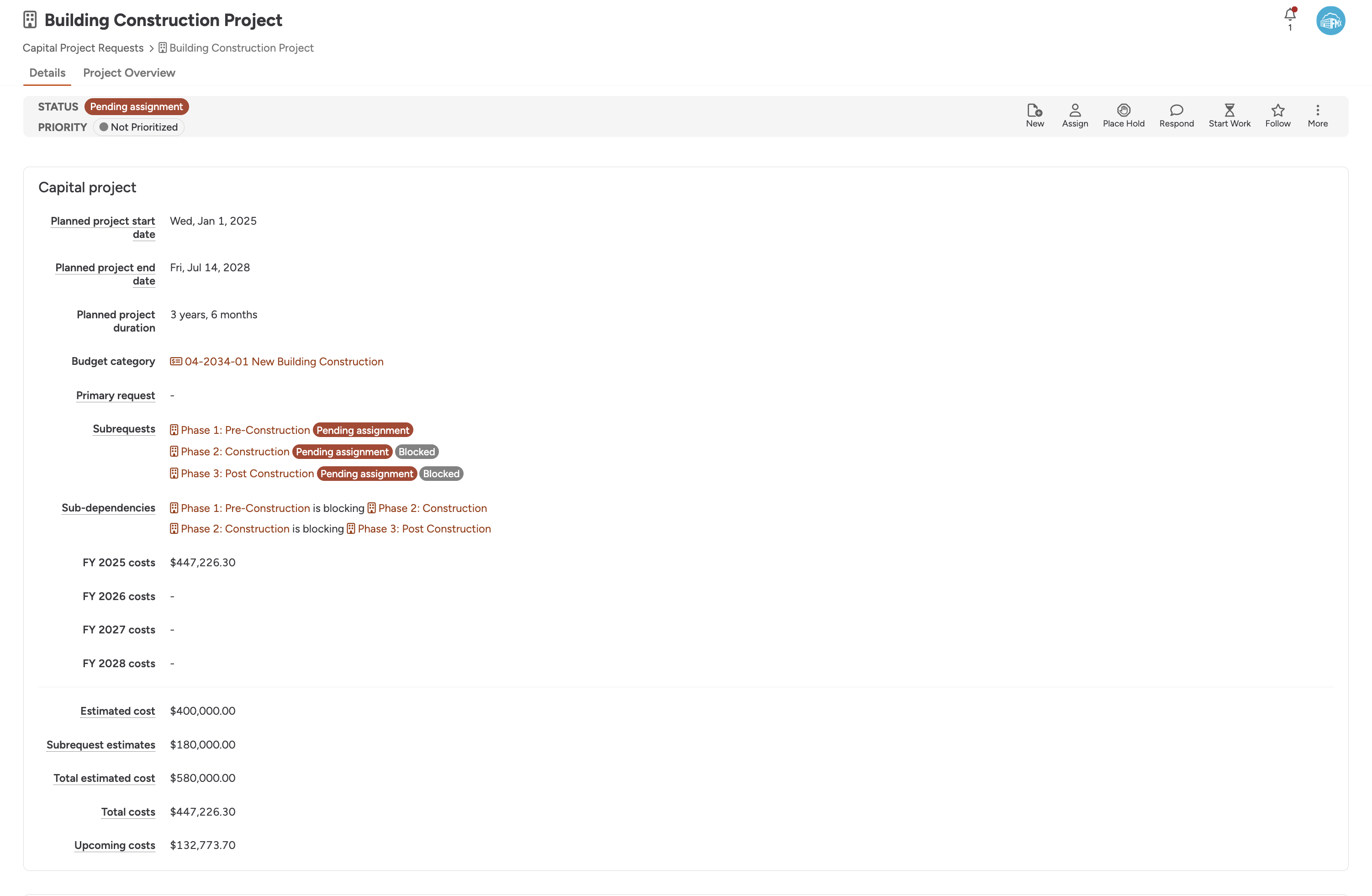 - Total Estimated Cost: The sum of the primary project's Estimated Cost and all Subrequest Estimates. This represents the complete planned cost for the entire initiative.