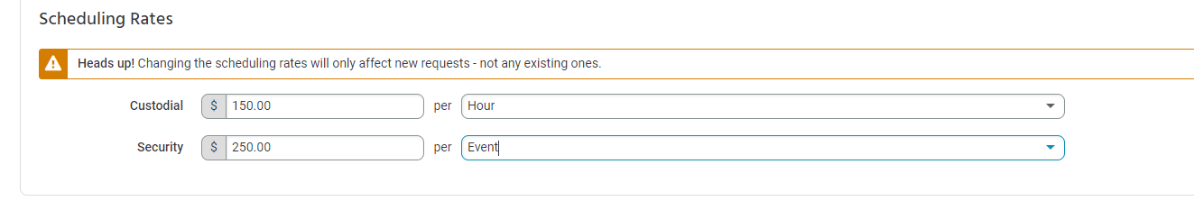 You can create Scheduling Rate Types in your Admin Settings under General Schedule Request Settings: Admin Settings > General > Schedule Request Settings > Scheduling rate types