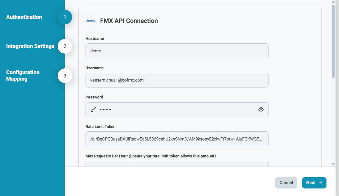 - Assign an identifiable name (e.g., "Fastenal Integration")