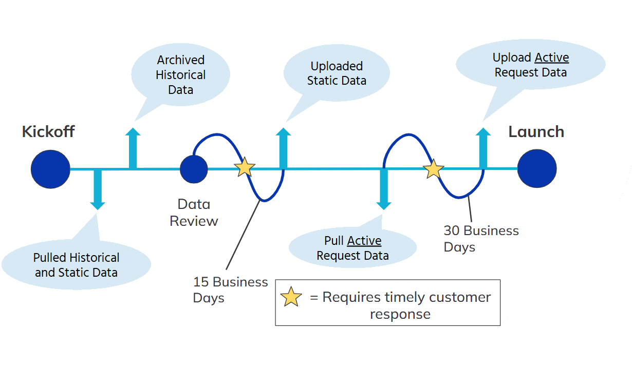 The standard timeline for the completed migration of active data is up to 30 business days from this date, so picking a date prior to the date you lose access is highly encouraged, if at all possible.